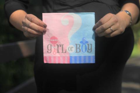 Maternity Photoshoot (is it a boy or a girl) (image holding sign)
